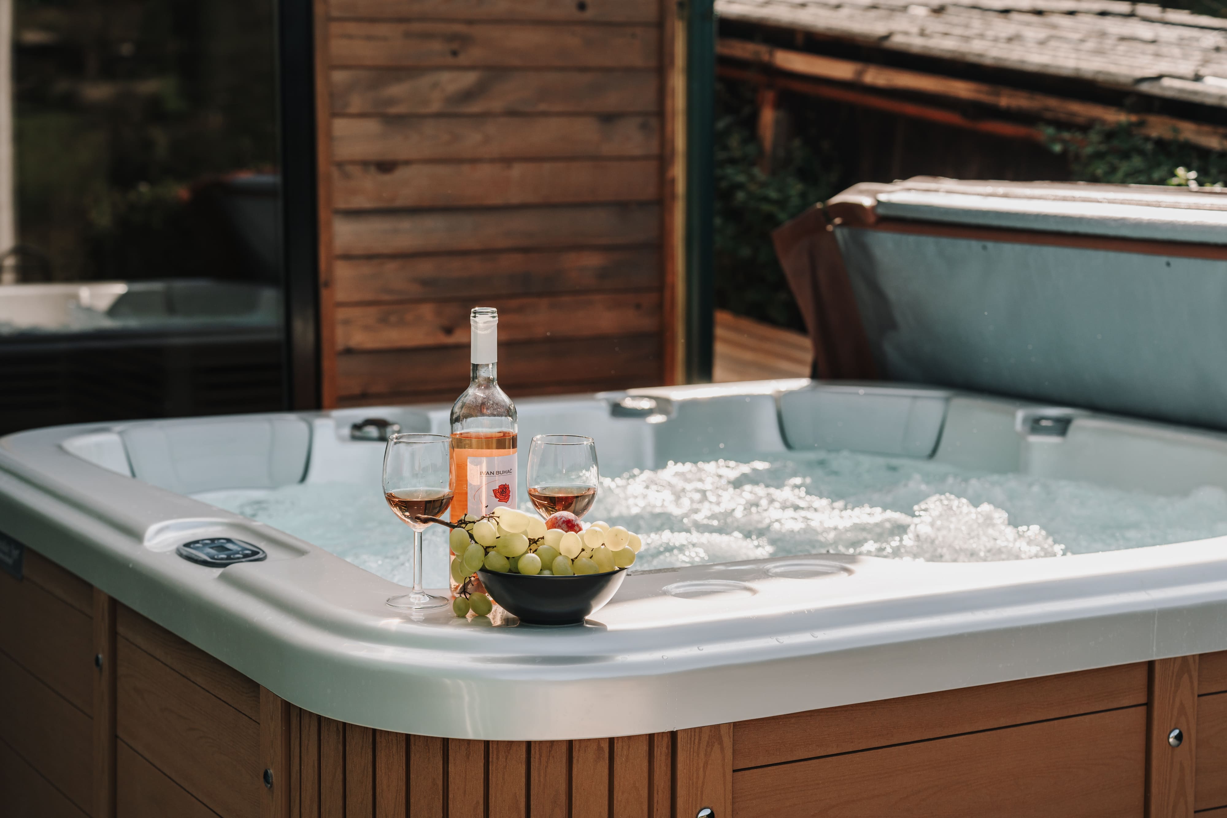 Fotografija odiše toplinom, elegancijom i osjećajem gostoprimstva. Savršena kompozicija, sklad tonova između boje oplate hidromasažnog bazena Gigas i drvene fasade kuće stvaraju dojam prirodne harmonije i luksuza. Ova slika pokazuje kako se hidromasažni bazen Canadian Spa International savršeno može uklopiti u rustikalno okruženje i postati idealno mjesto za trenutke uživanja, mira i hedonizma.